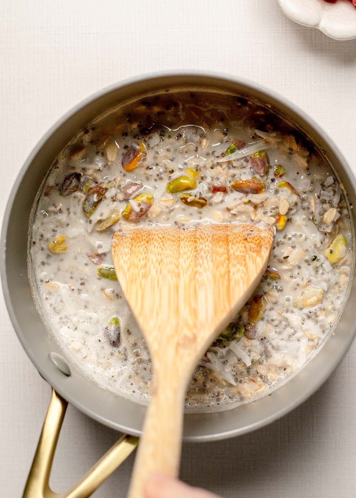 - Cook over medium-low heat. Don't rush this. A slower simmer allows the oats to hydrate fully and gives the chia seeds time to expand, naturally thickening the mixture.
